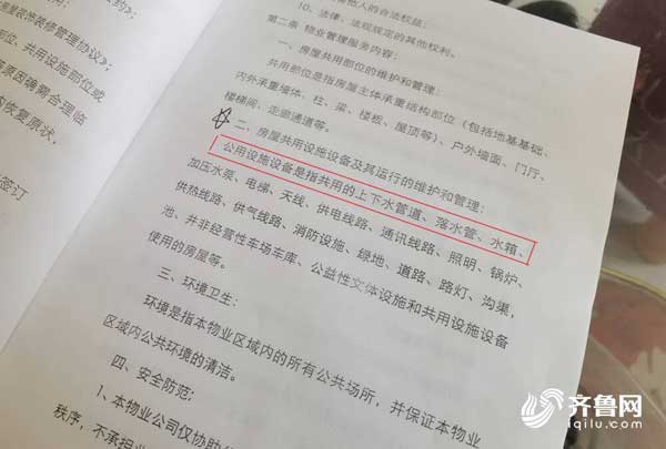 然而,记者在刘女士出具的物业方提供的《物业管理服务协议》中看到有这样一条规定:物业方需保证“共用设施设备运行正常,保证生活所需,定期予以维修、养护”。